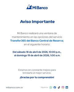 Información importante para ti que utilizas el servicio Transfer365 del Banco Central de Reserva.